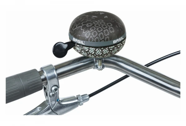 La sonnette de vélo Basil Boheme est une élégante sonnette noire avec un imprimé bohème.